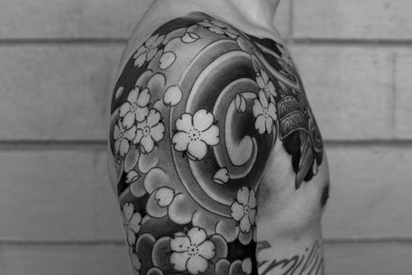 Typically this style of tattooing has the subjects (characters, animals, flowers) in color while the background elements (rocks, water, wind, clouds) are in black and gray.